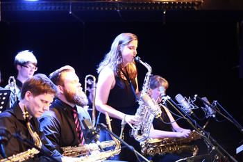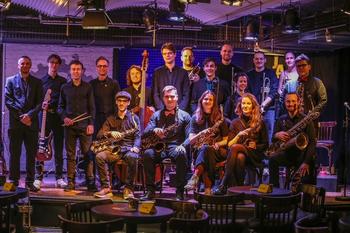 Erst 1999 gegründet und mit nur 18 Mitgliedern sind wir das kleinste, jüngste und jazzigste Ensemble des CM. Wir spielen oft und gerne Originalarrangements von Berliner Jazz-Komponisten, aber haben natürlich auch Klassiker des Jazz- und Poprepertoires im Programm. Seit 2022 leitet Martin Gerwig unsere Band. In den Probenphasen lässt er uns zu Hochform auflaufen, was durch regelmäßige, fantastische Konzerte in der Kunstfabrik Schlot belohnt wird.